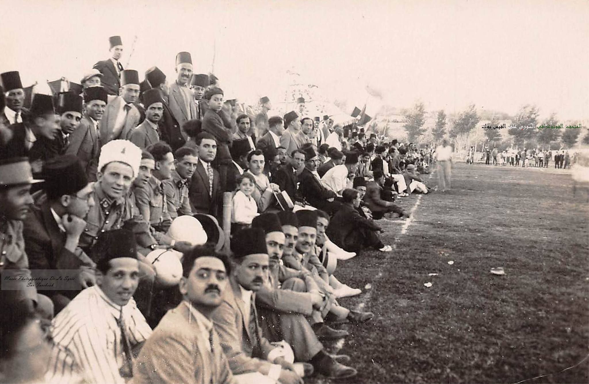 صورة نادرة لمباراة الركني بين فريقين من ( القوات الفرنسية الحرة و التابعة للجنرال ديغول ) وبين ( القوات البريطانية في دمشق عام 1942 ابان تواجد قوات الحلفاء على بر الشام وعلى أرض الملعب البلدي بدمشق حين أرسل هذه الصور أحد الجنود الفرنسيين لعائلته في فرنسا و كتب على ظهر الصورة كيف أنه نجح بتمرير الكرة لأحد أصدقائه و انهم انتصروا في تلك المبارات .