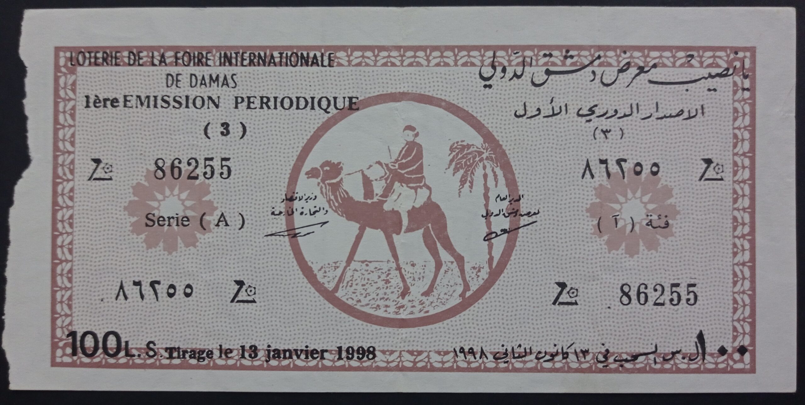 يانصيب معرض دمشق الدولي – الإصدار الدوري الأول عام 1998