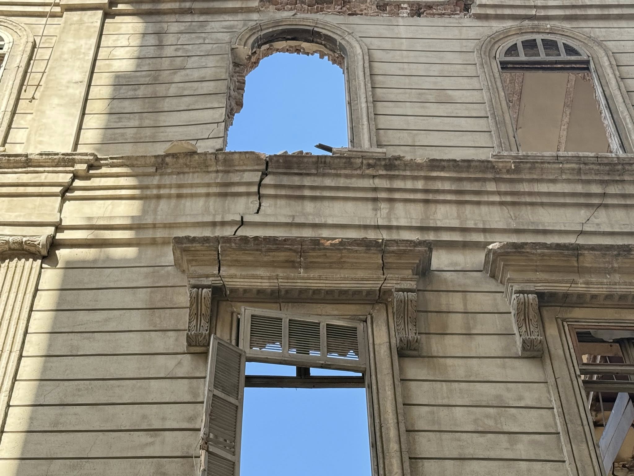 الواجهة الشرقية والبروز الشمالي الشرقي بعد يوم من الانهيار الذي جرى في البناء في الأول من تشرين الأول 2025م.