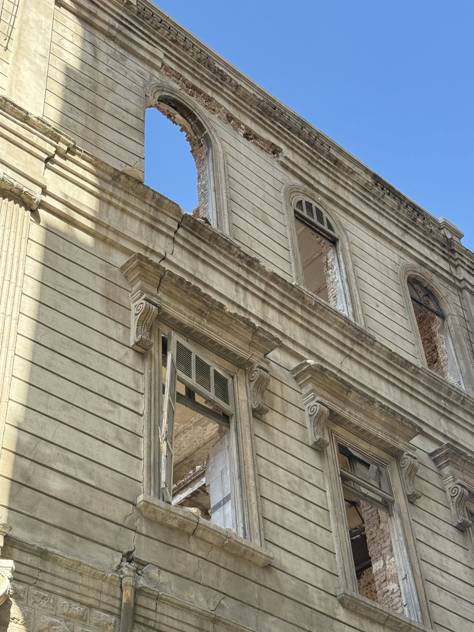 الواجهة الشرقية والبروز الشمالي الشرقي بعد يوم من الانهيار الذي جرى في البناء في الأول من تشرين الأول 2025م.