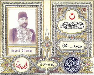 البطاقة النيابية العثمانية لمرعي باشا الملاح