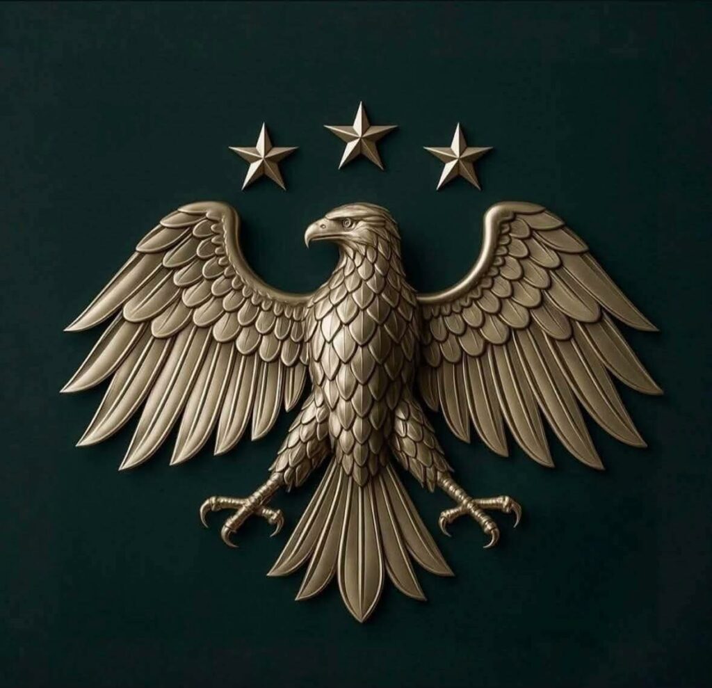 -يحضن الترس عُقاب مستمد من التاريخ العربي (إذ كانت راية قريش في الجاهلية وراية خالد بن الوليد عند فتحه دمشق هي العقاب).