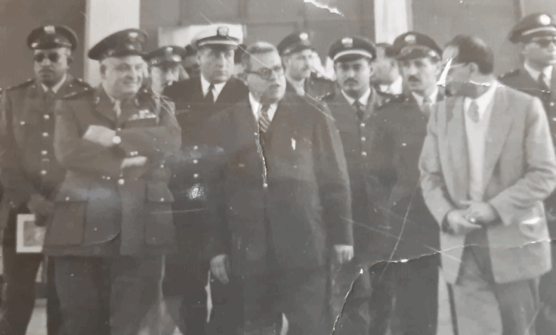 ناجي جميل قائد القوى الجوية والدفاع الجوي وأحمد عنتر مدير شركة الطيران و في سبعينيات القرن العشرين، بمناسبة استقبال طائرات…