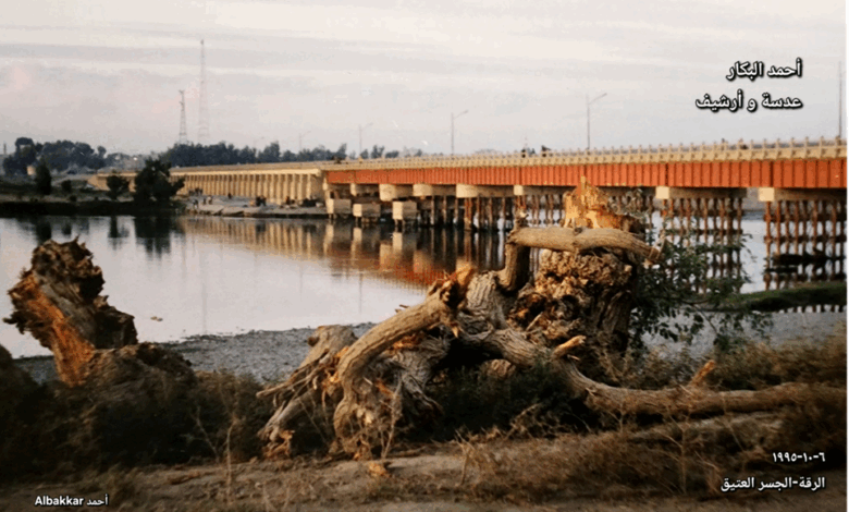 الجسر العتيق في الرقة في السادس من تشرين الأول عام 1995م عدسة وأرشيف: أحمد البكار – التاريخ السوري المعاصر
