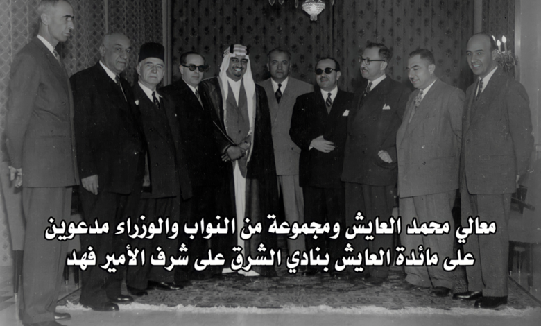 أكمل القراءة »مجموعة من النواب والوزراء مع الأمير فهد بن عبد العزيز في نادي الشرق بدمشق يظهر في الصورة من اليسار: الأول…