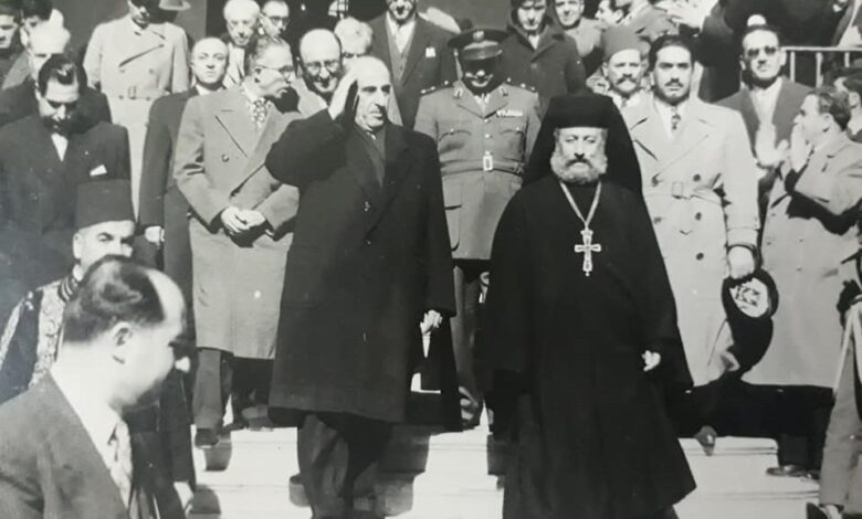 أكمل القراءة »الرئيس شكري القوتلي برفقة الأرشمندريت سرجيوس فرح بعد تأبين جول جمال في الكاتدرائية المريمية في التاسع من تشرين الثاني عام…
