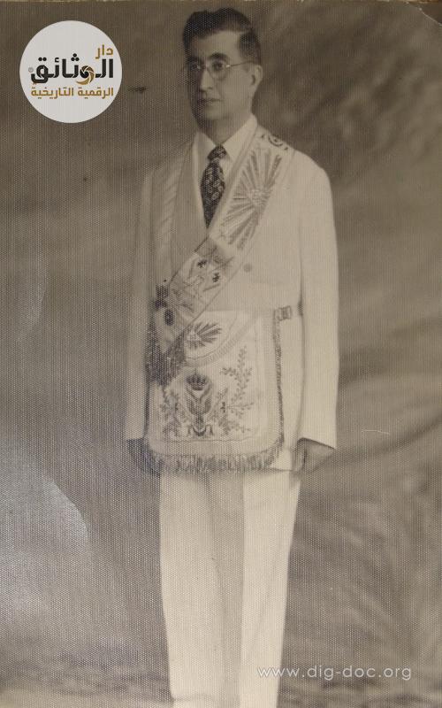 وجيه حلبي يرتدي اللباس الرسمي للمحفل الماسوني 1950م