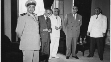 جمال عبد الناصر يستقبل فارس الخوري بمطار الماظة عام 1955