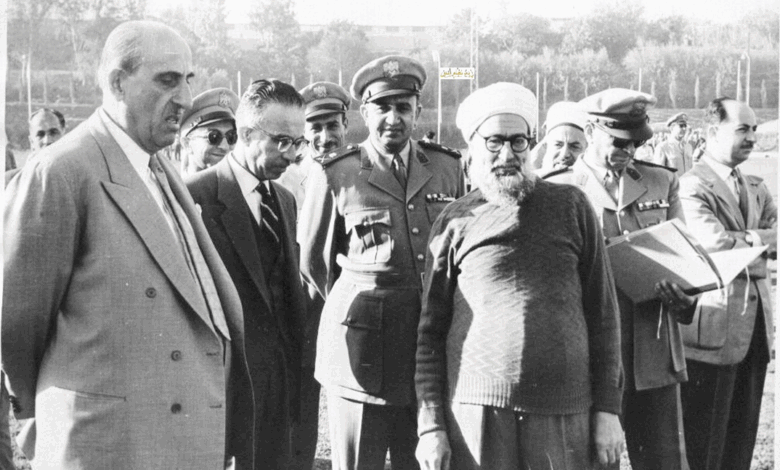 أكمل القراءة »الرئيس شكري القوتلي واللواء توفيق نظام الدين رئيس الأركان العامة في زيارة لأحـد مواقـع تدريب المقاومـة الشعبيـة 1956م. يظهر في…