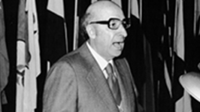 محمد رضا مرتضى أمام النموذج المعماري لمبنى وزارة الدفاع