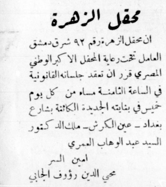 محفل الزهرة رقم 92 شرق دمشق كان تحت رعاية المحفل الأكبر الوطني المصري.