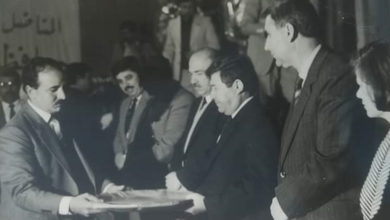 مدير مدرسة عبد الفتاح المقداد في درعا يتسلم جائرة من عبد الرزاق أيوب عام 1986
