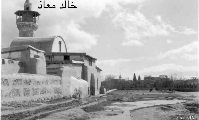 مسجد وأراضي الحيواطية قرب مشفى المجتهد في دمشق عام 1956م. انظر: أحد البيادر في سرغايا – ريف دمشق عام 1956م
