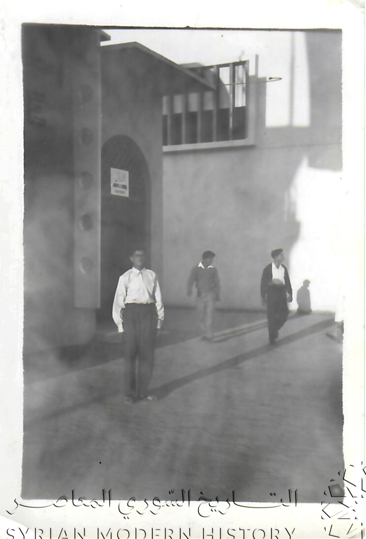 الأستاذ إبراهيم كحلوس أمام جناح الجزائر في معرض دمشق الدولي- في السابع والعشرين من أيلول عام 1957م