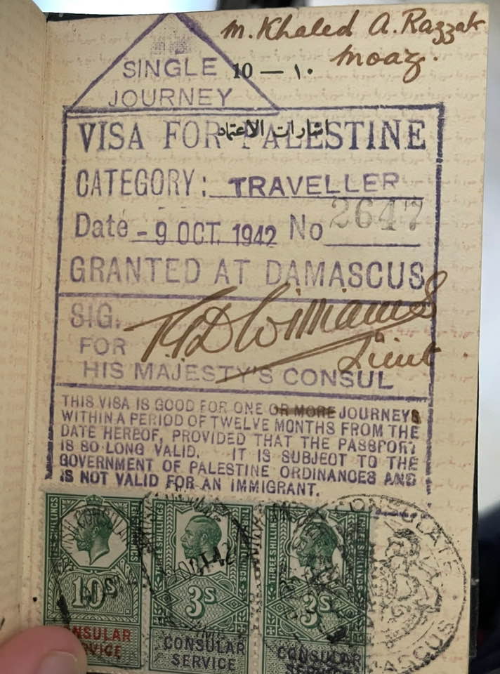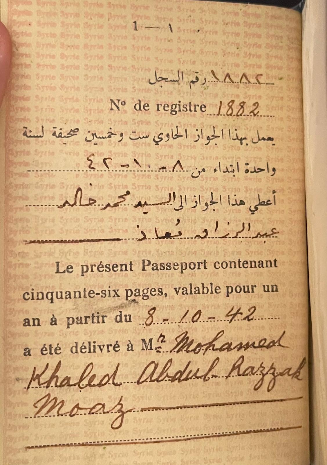 جواز سفر لـ خالد معاذ عام 1942م جواز سفر لـ خالد معاذ عام 1942م