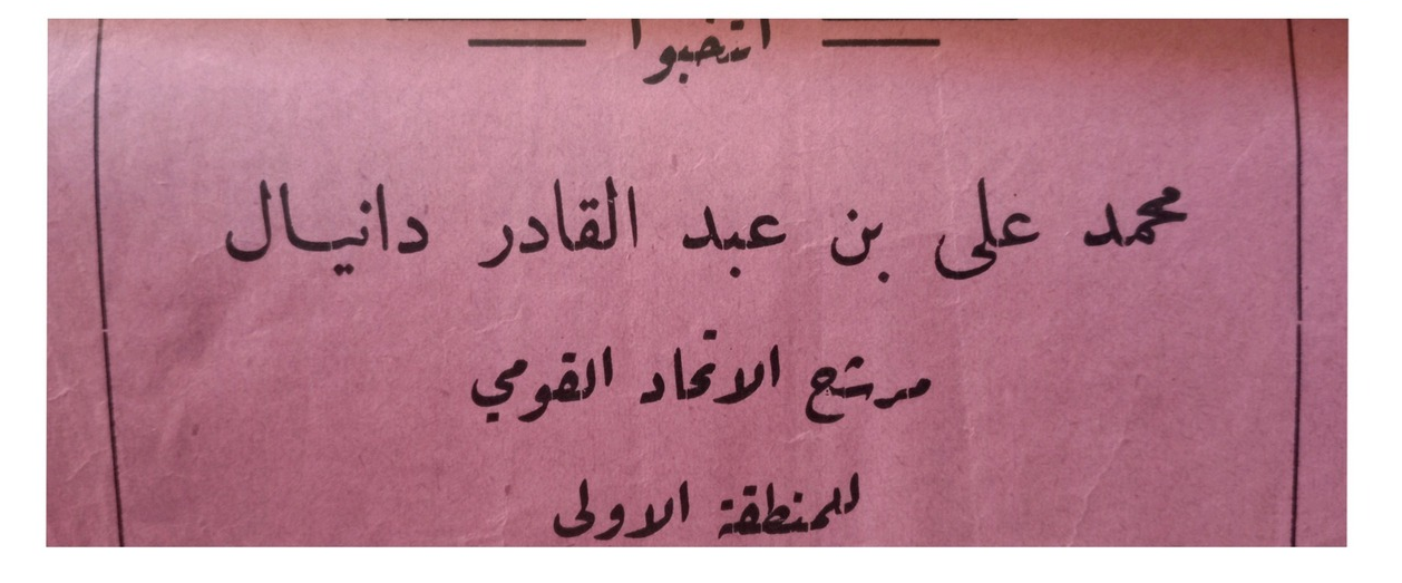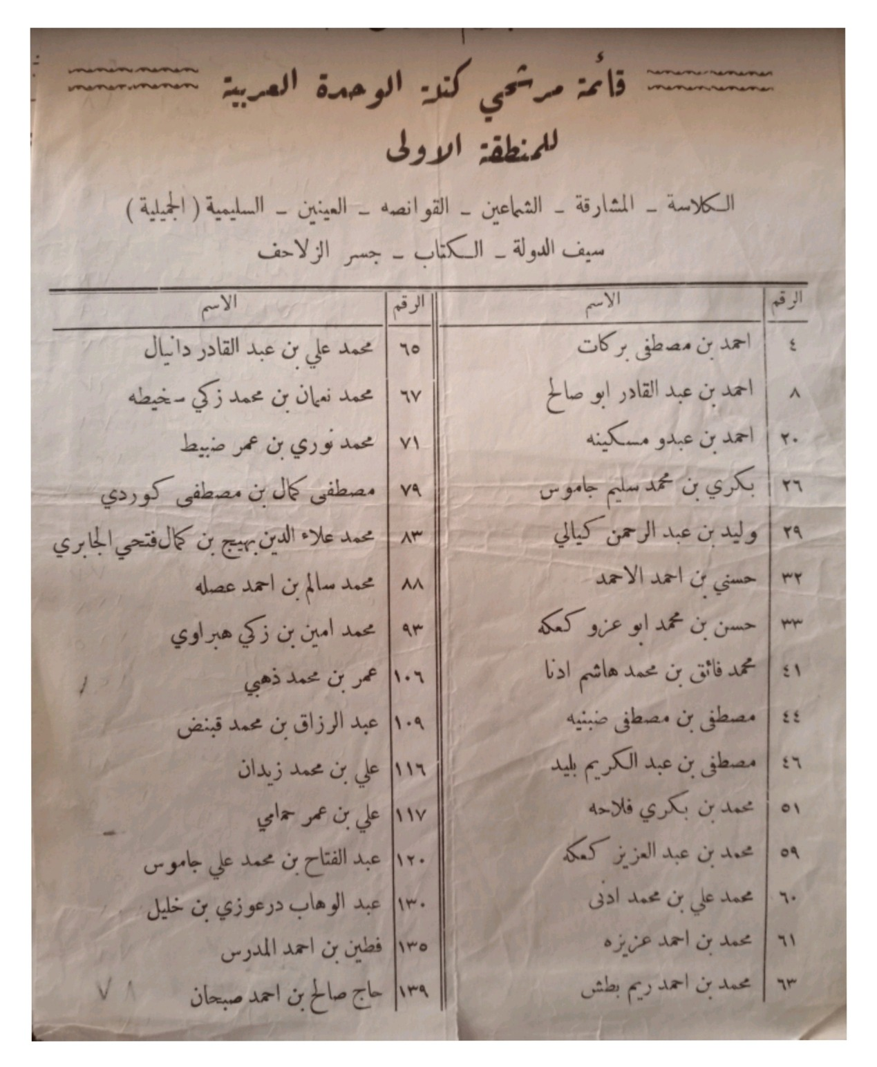 قائمة مرشحي كتلة الوحدة العربية للمنطقة الأولى في انتخابات الاتحاد القومي التي جرت عام 1959م.