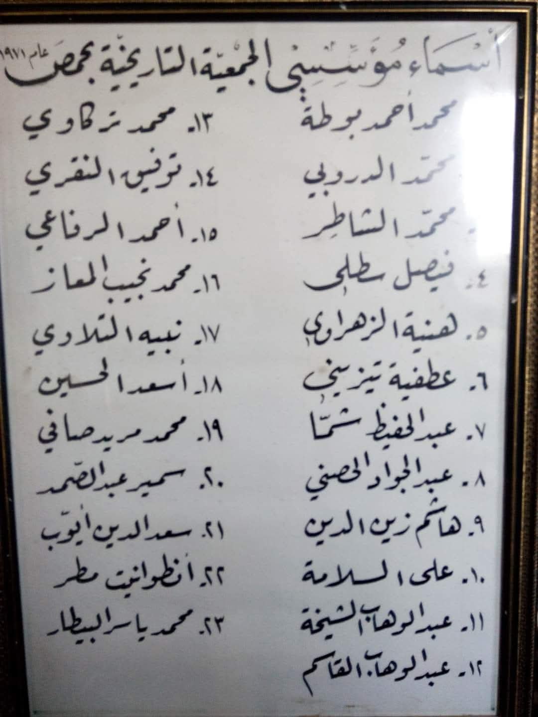 أسماء مؤسسي الجمعية التاريخية بحمص: