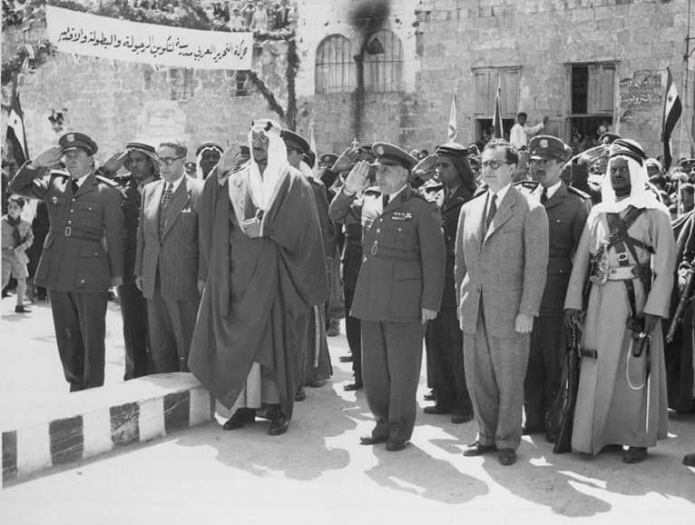 أديب الشيشكلي و الأمير سعود بن عبد العزيز في اللاذقية عام 1953م