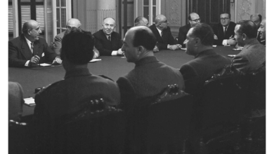 الرئيسان جمال عبد الناصر و شكري القوتلي في الاجتماع الأول في إطار محادثات الوحدة السورية – المصرية الذي عقد في قصر…