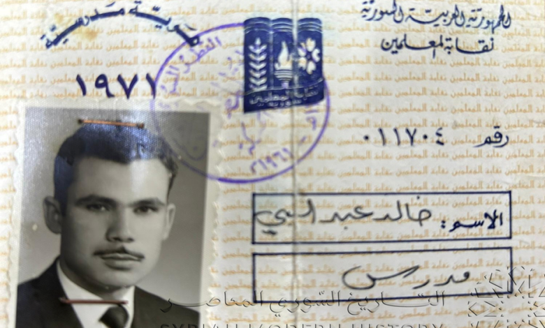 بطاقة نقابية للمدرس خالد عبد النبي أثناء التدريس في القامشلي عام 1971م